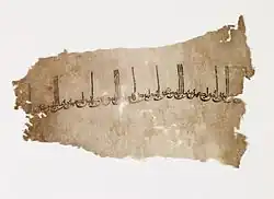 Сохранившиеся фрагменты тиразов - официальных документов Халифата (содержат титулатуру халифа) |