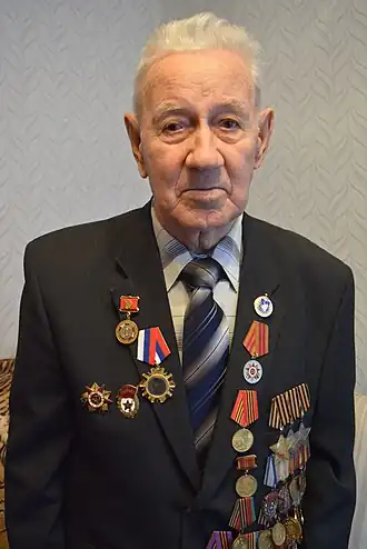 Капитан в отставке. Награждён орденами Славы 1-й, 2-й и 3-й степени, Отечественной войны 1-й степени, «Знак Почета», медалями. Участник Парада Победы 1995 года.