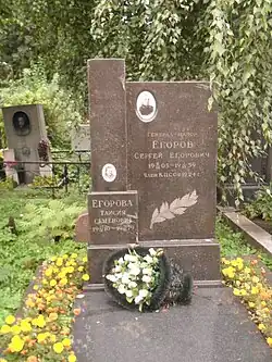 - ↑ Уточнено по надписи на памятнике на могиле на Новодевичьем кладбище