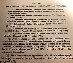 Экономический и Социальный Совет Организации Объединенных Наций резолюцией 689 J (XXVI) от 28 июля 1958 года постановил в соответствии с пунктом 4 статьи 62 Устава Организации Объединенных Наций и с постановлениями резолюции 366 (IV) Генеральной Ассамблеи от 3 декабря 1949 года созвать конференцию полномочных представителей, для того чтобы принять Единую конвенцию о наркотических средствах, заменив единым документом существующие многосторонние договоры в этой области, сократить число договорных международных органов, ведающих исключительно контролем над наркотическими средствами, и установить контроль над производством наркотического сырья.