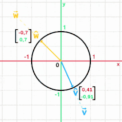 Единичный вектор выровнен параллельно в неком направлении (голубая линия), и ортогональный единичный вектор . | |