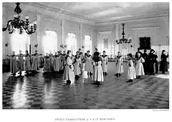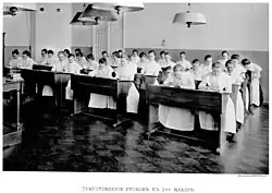 В училище было 6 научных классов, в которых проходили закон Божий, языки русский, французский, немецкий, математику, историю, географию, музыку, пение и танцы. В Елизаветинском Институте обучались дети офицеров и военных, из небогатых семей, поэтому выпускницы становились педагогами, гувернантками[2].