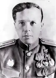 - ↑ Указ Президиума Верховного Совета СССР «О присвоении звания Героя Советского Союза офицерскому составу военно-воздушных сил Красной Армии» от 4 февраля 1944 года // Ведомости Верховного Совета Союза Советских Социалистических Республик : газета. — 1944. — 17 февраля (№ 10 (270)). — С. 1. Архивировано 8 марта 2022 года.