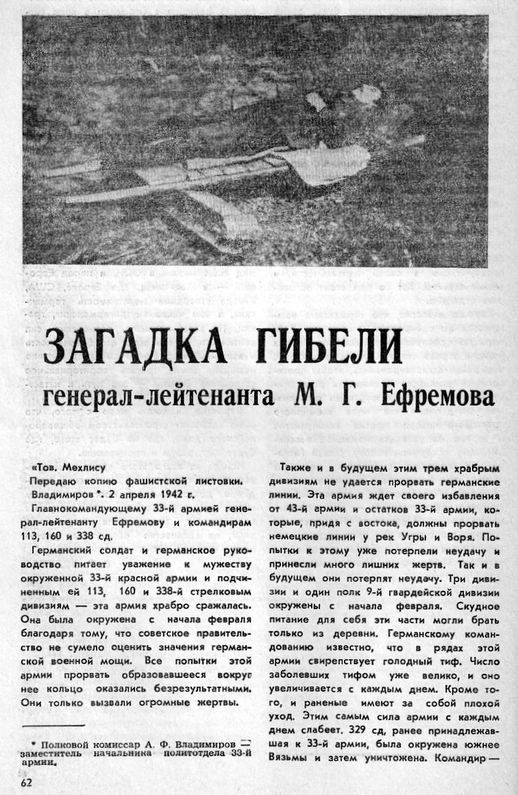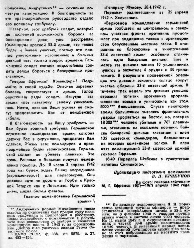 • Ефремов М. М. Под Вязьмой весной 1942 года // Военно-исторический журнал, № 3. — 1992. — С.9-17.