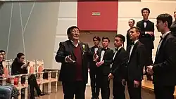 ![]() Б.А Жаманбаев на открытии XIV Республиканской студенческой олимпиады. Казахская национальная консерватория имени Курмангазы. | |