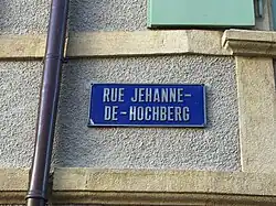 В августе 1943 года, через 400 лет после смерти, именем Жанны де Хохберг была названа улица в Нёвшателе (la rue Jehanne-de-Hochberg).