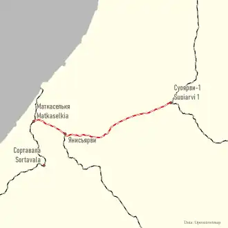 - ↑ На участке Маткаселькя — Суоярви I отсчёт от ст. Кушелевка. От ст. Суоярви I и далее отсчёт от ст. Суоярви I