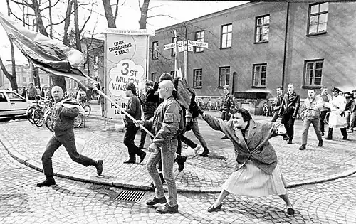 7. 1 2 Vinnardag, Simon (10 апреля 2018). Nazistdemonstrationen 1985 – mer än bara kvinnan med handväskan. SVT Nyheter. Архивировано 14 апреля 2021. Дата обращения: 14 апреля 2021.