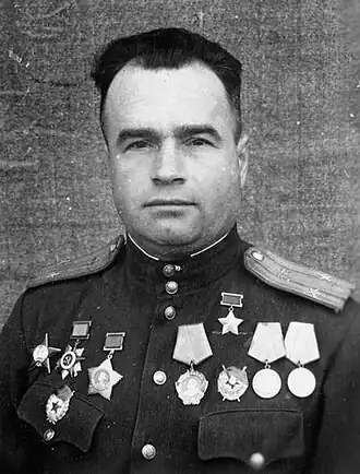 - Награждён ещё одним орденом Ленина, тремя орденами Красного Знамени, орденом Суворова 3-й степени, двумя орденами Отечественной войны 1-й степени, орденом Отечественной войны 2-й степени, тремя орденами Красной Звезды, а также медалями, в том числе — «За взятие Берлина» и «За взятие Кёнигсберга».