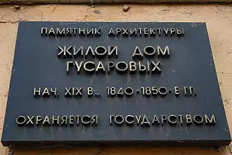 Памятник архитектуры. Жилой дом Гусаревых нач XIX в., 1840 - 1850-е гг. Охраняется государством