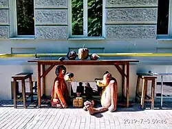 - В 2013 году в центре Киева установили деревянную скульптурную композицию, в которую вошли сидящие под столом Волк и Пёс. Автор — винницкий скульптор Владимир Заяц.