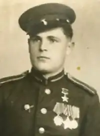- ↑ На момент представления к присвоению звания Героя Советского Союза.