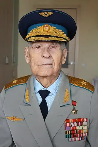 - ↑ Будущие летчики ВВС встретились с легендой Советской авиации. Министерство обороны России (23 февраля 2015). Дата обращения: 29 июня 2017.
