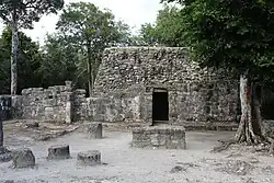 Остров оказался бедным и слабо населённым, но со следами некогда существовавшей цивилизации. В одном храме он обнаружил изображение креста, что породило несколько ложных теорий о происхождении индейцев. В то же время Кортес обнаружил на острове признаки идолопоклонства и человеческих жертвоприношений, что крайне возмутило его, и он решил уговорить индейцев сменить веру: этим занялись лиценциат Хуан Диас и падре Бартоломе де Ольмедо. Они попытались убедить индейцев отказаться от идолопоклонства и разрешить испанцам уничтожить статуи идолов, но индейцы боялись, что боги отомстят им. Кортес решил действовать радикально, и приказал сбросить статуи богов со ступень храма. На месте статуй был построен алтарь и установлено изображение Девы Марии, а падре Ольмедо провёл первую мессу в истории Мексики[3].