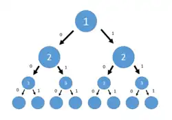 На рисунке показано дерево перебора для трёх предметов. Каждый лист соответствует некоторому подмножеству предметов. После составления дерева необходимо найти лист с максимальной ценностью среди тех, вес которых не превышает [9].