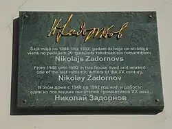 - В Риге на доме, в котором жил Задорнов в 1948—1992 годах (угол улиц Рупниецибас и Элизабетес), в 2009 году открыта памятная доска.