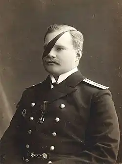 В 1902 году закончил Морской кадетский корпус, произведён в мичманы и назначен на эскадренный миноносец «Бойкий». Прибыл в Порт-Артур и принял активное участие в обороне крепости. 26 февраля 1904 года в ночном бою с отрядом японских миноносцев на миноносце «Выносливый» был тяжело ранен (один осколок выбил ему глаз и раздробил глазницу, другой попал в правую руку)[1].
