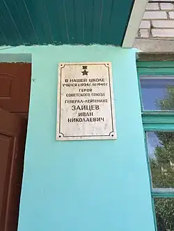- На фасаде здания школы №2 Ахтубинского района, в которой учился и преподавал Зайцев Иван Николаевич[2], установлена памятная доска.