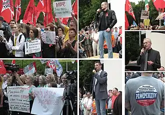 - ↑ Е. Мухаметшина. В Москве не разрешили провести митинг против повышения пенсионного возраста. Ведомости (11 июля 2018). Дата обращения: 11 июля 2018. Архивировано 11 июля 2018 года.