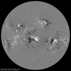 - ↑ Hagenaar, Hermance J. (July 2001). Ephemeral Regions on a Sequence of Full‐Disk Michelson Doppler Imager Magnetograms. The Astrophysical Journal. 555 (1): 448–461. doi:10.1086/321448.