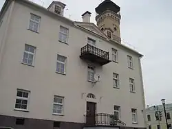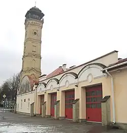 Здание пожарного депо с каланчой. Историко-культурная ценность. В начале XX века было возведено пожарное депо, завершенное в 1902 году. Комплекс пожарной части города был построен в форме каре. Главный, южный фасад комплекса со стороны Замковой улицы состоял из современного дома № 17, № 19 и пожарной каланчи, которые соединяла 1—этажное сооружение с семью въездами для пожарных машин. С запада, со стороны Старого замка, находился 1-этажный фасад. Со стороны городничанки и современной Большой Троицкой улице проходила кладка. В северной части комплекса находилась деревянная тренировочная башня[18].