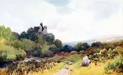 Замок Окхамптон кисти Фредерика Джона Уиджери (акварель, 1913)