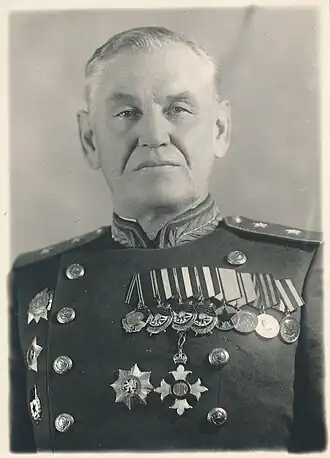 Бакинским пехотным училищем имени Серго Орджоникидзе 2-е Орджоникидзевское пехотное училище 409-я стрелковая дивизия 197-я стрелковая дивизия 59-я гвардейская стрелковая дивизия 18-й стрелковый корпус 4-й гвардейский стрелковый корпус 11-й стрелковый корпус 20-й гвардейский стрелковый корпус |
