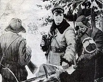 Однако в ночь с 13 на 14 ноября в часть, в которой готовился уход в лес к партизанам, с внезапной проверкой прибыла немецкая инспекция. Зачинщики были расстреляны, а остальные в срочном порядке отправлены под Смоленск[10]. В деревню Куповать были отправлены два батальона РННА в советской военной форме[11] под немецким командованием.