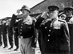 Командующий 4-й гвардейской армией генерал-лейтенант Н. Д. Захватаев с американским генералом Джорджем Паттоном после награждения орденом «Легион почёта»