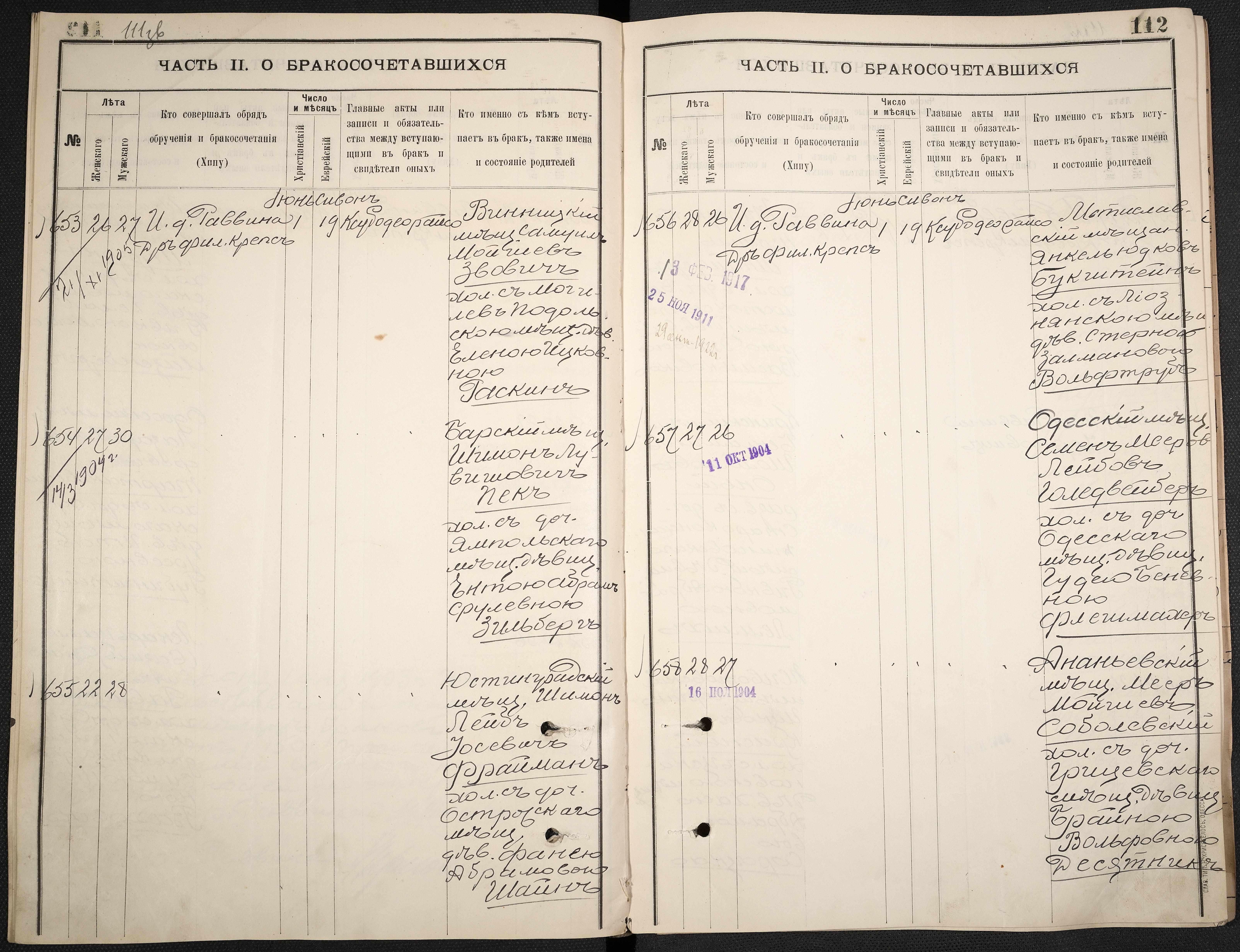 - ↑ Запись о бракосочетании в канцелярии одесского городского раввина