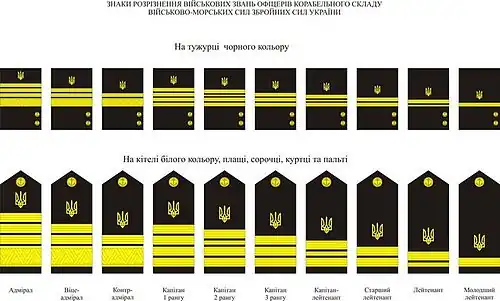 Законом Украины от 25 марта 1992 г. № 2232-XII «О всеобщей воинской обязанности и военной службе» установлены воинские звания[4]: