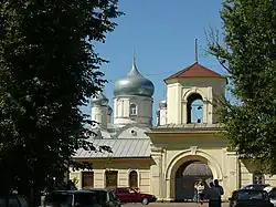 Главная монастырская церковь — Покрова Богородицы, известна с XII века. Изначально храм был деревянным, а в 1335 году архиепископом Василием на его месте был заложен каменный. Церковь продолжили строить в 1399 году при архиепископе Иоанне II. После шведского разорения храм получил новое посвящение в честь Положения ризы Богородицы. В 1852 году рядом с церковью была похоронена вторая жена русского писателя, государственного и общественного деятеля Ивана Матвеевича Муравьёва-Апостола, Прасковья Васильевна, урожденная Грушецкая.
