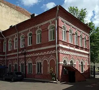 По соседству с Меншиковой башней в Архангельском переулке стоит кирпичный двухэтажный терем в «русском стиле». Это здание Детского приюта Елизаветинского благотворительного общества, построенное в 1892 году по проекту архитектора Александра Попова.