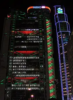 | Здание банка Standard Chartered и здание банка HSBC (фасады выходят на Des Voeux Road Central) |