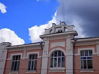 Для внешнего убранства здания характерны кронштейны, тяги, выступы над окнами, ниши. Лучковые перемычки имеют окна здания. Слишком выделяются широкие арочные окна зала и коридоров с архивольтами, и имеющими обрамления в виде «спусков» по сторонам. Поверхности стен выполнены в кирпиче с расшивкой швов, отштукатурен элементы декора. Выступ с рустовкой нижней части боковых пилонов выделяет главный вход в центре ризалита[4].