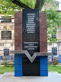 В 1974 году на территории завода был открыт памятник по проекту скульптора Виктора Новикова — «Егоровцам, павшим в дни блокады и на фронтах Великой Отечественной войны в 1941—1945 годах». Мемориал был утрачен и восстановлен на территории жилого комплекса в 2015 году[14]. В 2017 году при восстановлении одного из элементов ранее снесённых зданий (торца здания, оформленного теперь в виде арки) была установлена новая версия памятника, посвящённая уже заводу в целом («На этой территории с 1874 по 2013 год работал завод, занимавшийся производством пассажирских вагонов для железных дорог и электровозов для метрополитена Санкт-Петербурга»)[13]. В 2020 году памятник был перенесён ради организации на его месте автостоянки, новое место расположения не было объявлено[15].