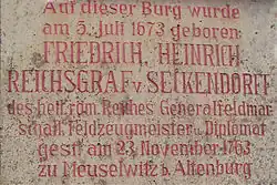 - 1 2 Kematmüller H. Seckendorf: Friedrich Heinrich Reichsgraf v. (нем.) // Allgemeine Deutsche Biographie — Leipzig: 1891. — Vol. 33. — S. 514–517.
