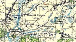 - ↑ Назвы не перакладаюцца і ў данясенні пададзена вычварнае — Selenyi Gei (замест Selenyj Gaj, як на карце); а па-нямецку гэта быў бы Grünwald.