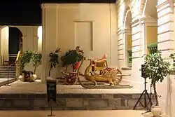 Здесь можно увидеть карнавальные сани[14] и садовую коляску Петра I — редчайший образец прогулочного экипажа начала XVIII века[15].