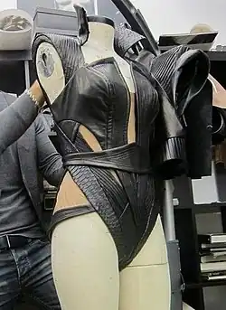 Рубин сделал для Бейонсе следующие вещи костюма: трико, мотоциклетную куртку с несимметричным воротником и несимметричную микроюбку. Основным материалом для трико и мотоциклетной куртки была разного рода чёрная кожа, в том числе кожа питона и игуаны. Микроюбка по замыслу выглядела сделанной из «жидкого нейлона». Для её создания использовали металл, нейлон, шёлк и пластик[11], изнутри костюм полностью эластичен. При создании костюма использовалась резка лазером. Это один из самых сложных костюмов из коллекции Зингера.