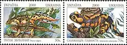 Зчіпка серії «Червона книга України»: Тритон звичайний; Саламандра плямиста.. с укр. — «Сцепка «Красная книга Украины»: