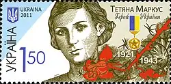 - ↑ Марка Тетяна Маркус. 1921-1943. Герой України/2011. (укр.). КМД УДППЗ «Укрпошта». poshta.kiev.ua. Дата обращения: 18 апреля 2018. Архивировано из оригинала 29 марта 2018 года.