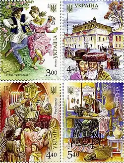 - ↑ Серія «Національні меншини в Україні. Євреї». Марка «Танець “Фрейлахс”»/2016 (укр.). КМД УДППЗ «Укрпошта». poshta.kiev.ua. Дата обращения: 25 февраля 2018. Архивировано из оригинала 25 февраля 2018 года.