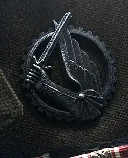 Знак представляет собой руку в доспехах с гусарским крылом и мечом в руке, находящуюся в шестерне. Серебряный знак был разработан Виктором Гонтарчиком, была также серебряная версия Станислава Рейзинга для унтер-офицеров и рядовых. Реверс был простой и включал в себя только инициалы гравёра «WG» и серебряным пуансоном, выполненные грубой, дюймовой резьбой. Этот знак также носили Польские вооруженные силы на Западе, которые для них производили компании Kirkwood and Son из Эдинбурга и Steinhauer из Люденшайда.