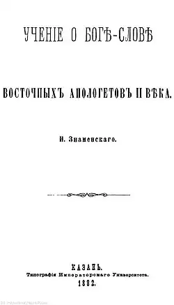 - ↑ Научное наследие России. Знаменский И. С. Учение о Боге-Слове у восточных апологетов II века. Дата обращения: 21 апреля 2016. Архивировано 21 апреля 2016 года.