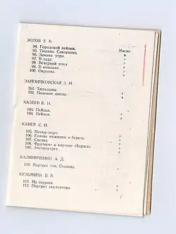 - ↑ Реестр профессиональных художников Российской империи, СССР, «русского зарубежья», Российской Федерации и республик бывшего Советского Союза (XVIII—XXI вв.) Архивная копия от 30 октября 2021 на Wayback Machine, Профессиональный союз художников России