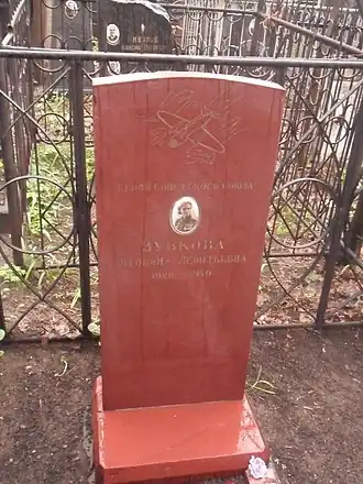 - ↑ Культурное наследие г. Москва Могила — Зубкова Антонина Леонтьевна (1920—1950), Герой Советского Союза. Дата обращения: 12 апреля 2020. Архивировано 12 апреля 2020 года.