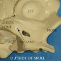 Скуловой имплантат длиннее, чем стандартные имплантаты и используется у людей без адекватной кости в верхней челюсти; он крепится к скуле