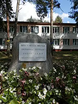 ![]() Стела при въезде в НДЦ «Зубрёнок» | |