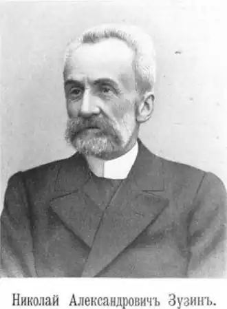 Зузин Николай Александрович 20 июля [1 августа] 1835 — 01 [13] июля 1891, похоронен в селе Сущёво Костромского уезда — Штабс-капитан в отставке (1863). Участник Крымской войны (1853—1856) и Севастопольской обороны (1854—1855)[1]. В дальнейшем, являлся видной фигурой в костромском земстве. Владелец усадьбы Денисово[2] Костромского уезда. Статский советник. Потомственный дворянин.